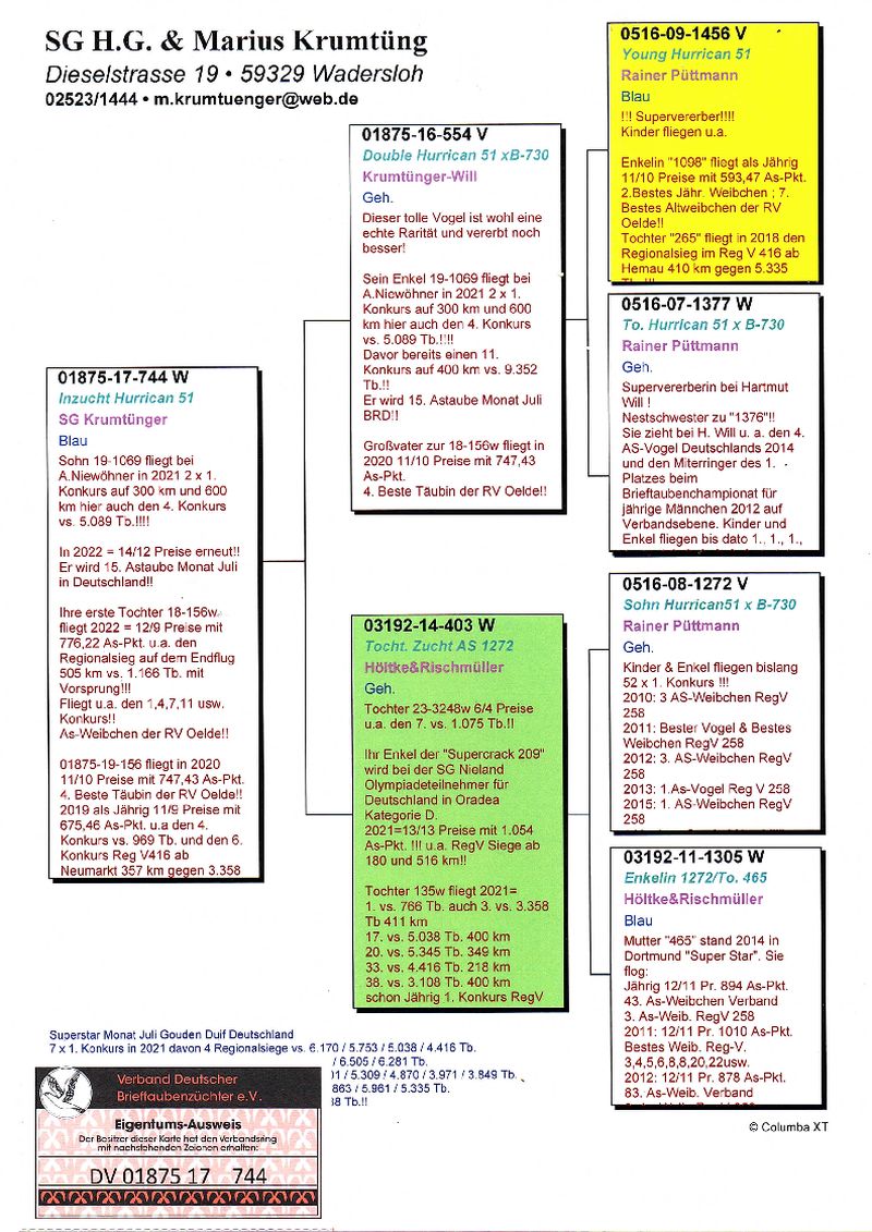 Top-Vererber "1272" Sohn "Hurrican 51" x Enk."Hurrican51" Vollbruder "974"